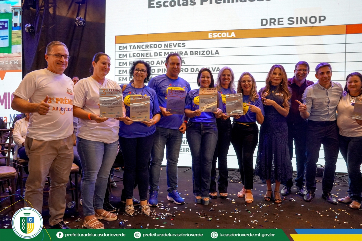 A Secretaria de Educação de Lucas do Rio Verde participou, nesta terça-feira (02), da cerimônia de premiação do 3º Prêmio Educa MT. O evento, realizado no Ginásio Aecim Tocantins, em Cuiabá, reuniu representantes das 100 escolas (sendo quatro de Lucas do Rio Verde) vencedoras da edição, pelas boas práticas que elevaram os índices de alfabetização na idade certa, de até 7 anos e oito meses.