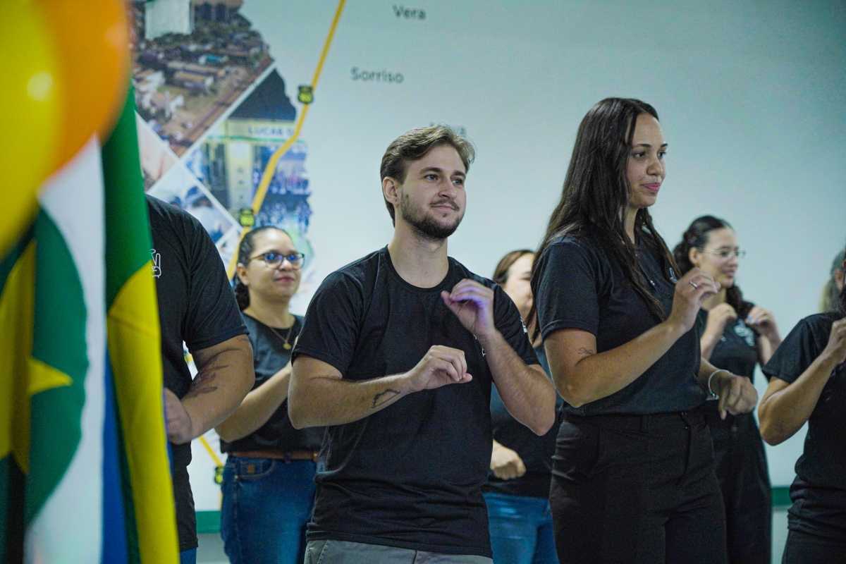 A cerimônia também contou com a emocionante apresentação das crianças da Escola Renascer – APAE e com uma apresentação em Libras realizada pelos monitores das escolas municipais.